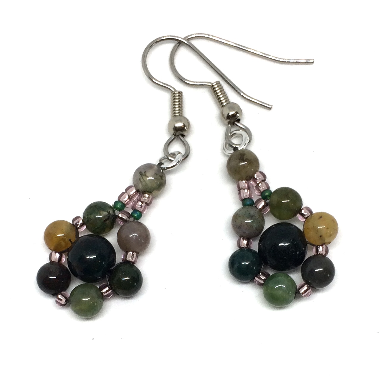 Totally cute accent earrings are the thing today. I created a circle of earthy jasper beads showing the various colors of green and wheat. The center jasper bead is a forest green.