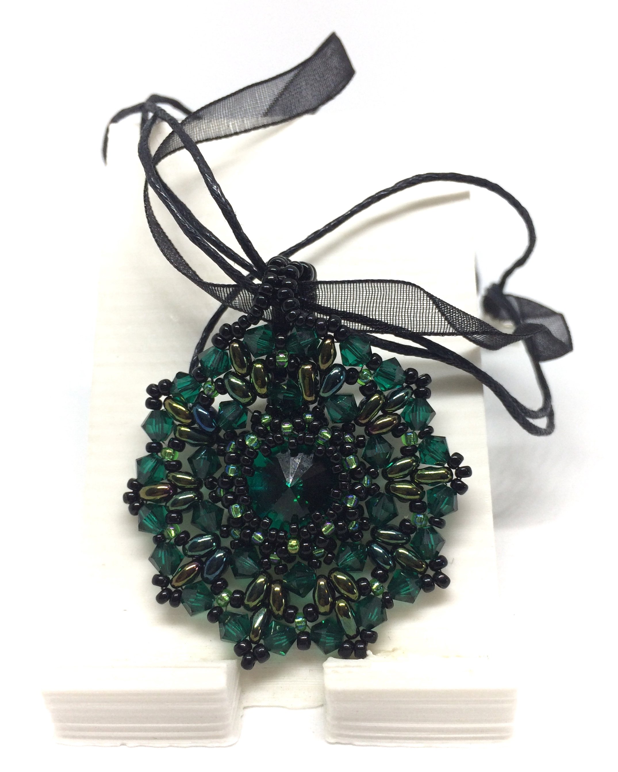 Emerald Green Color Swarovski Crystal Woven Pendant