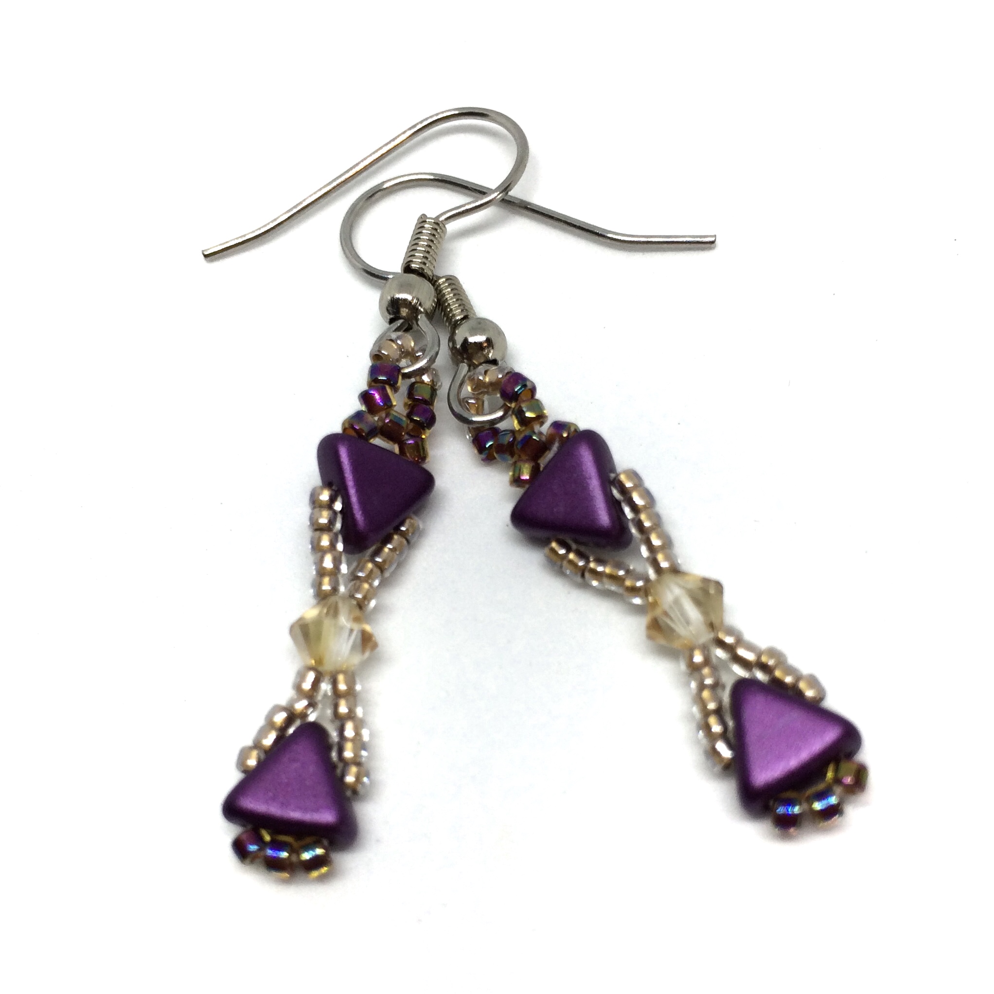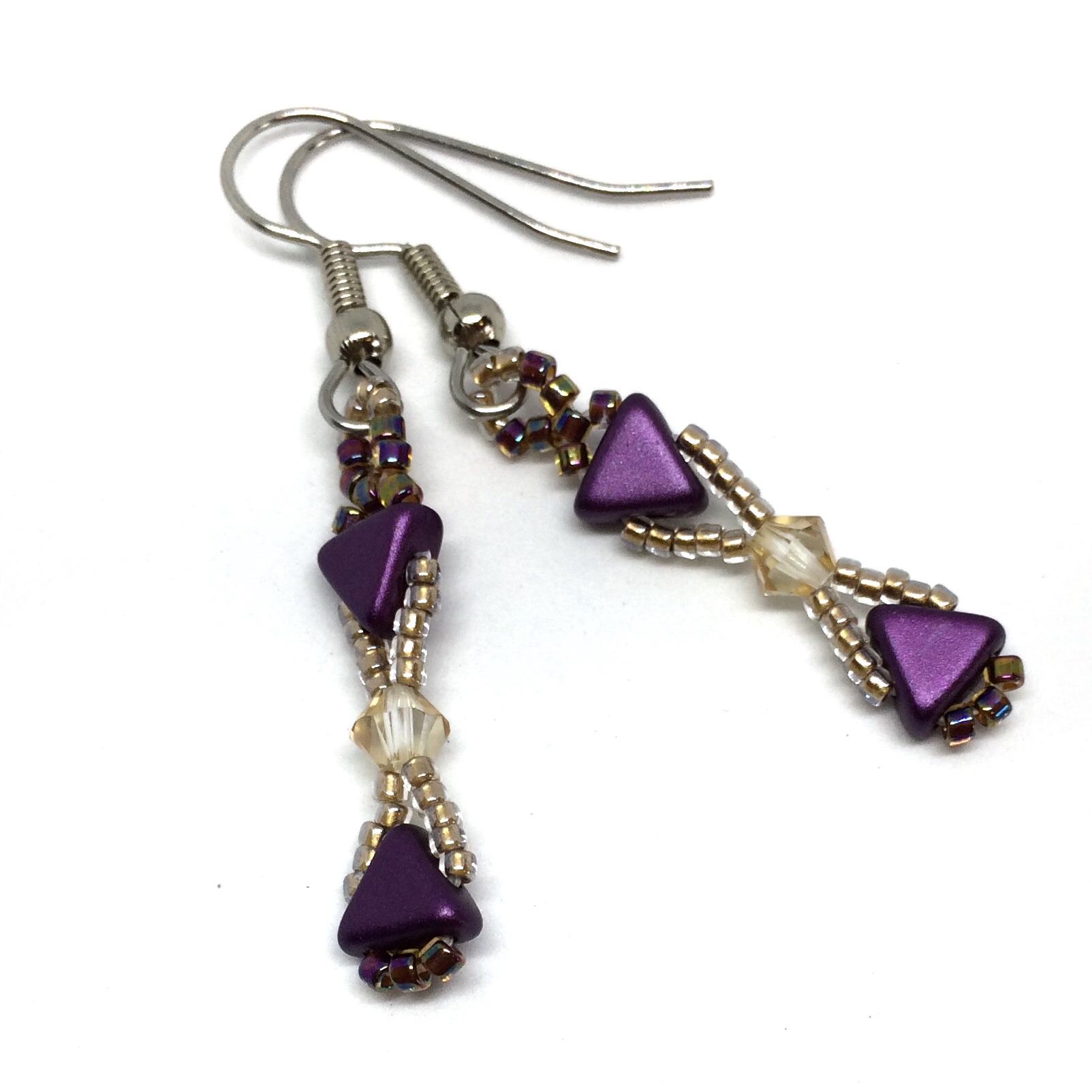 Purple Triangle with Light Gold Crystal Dangle Earrings