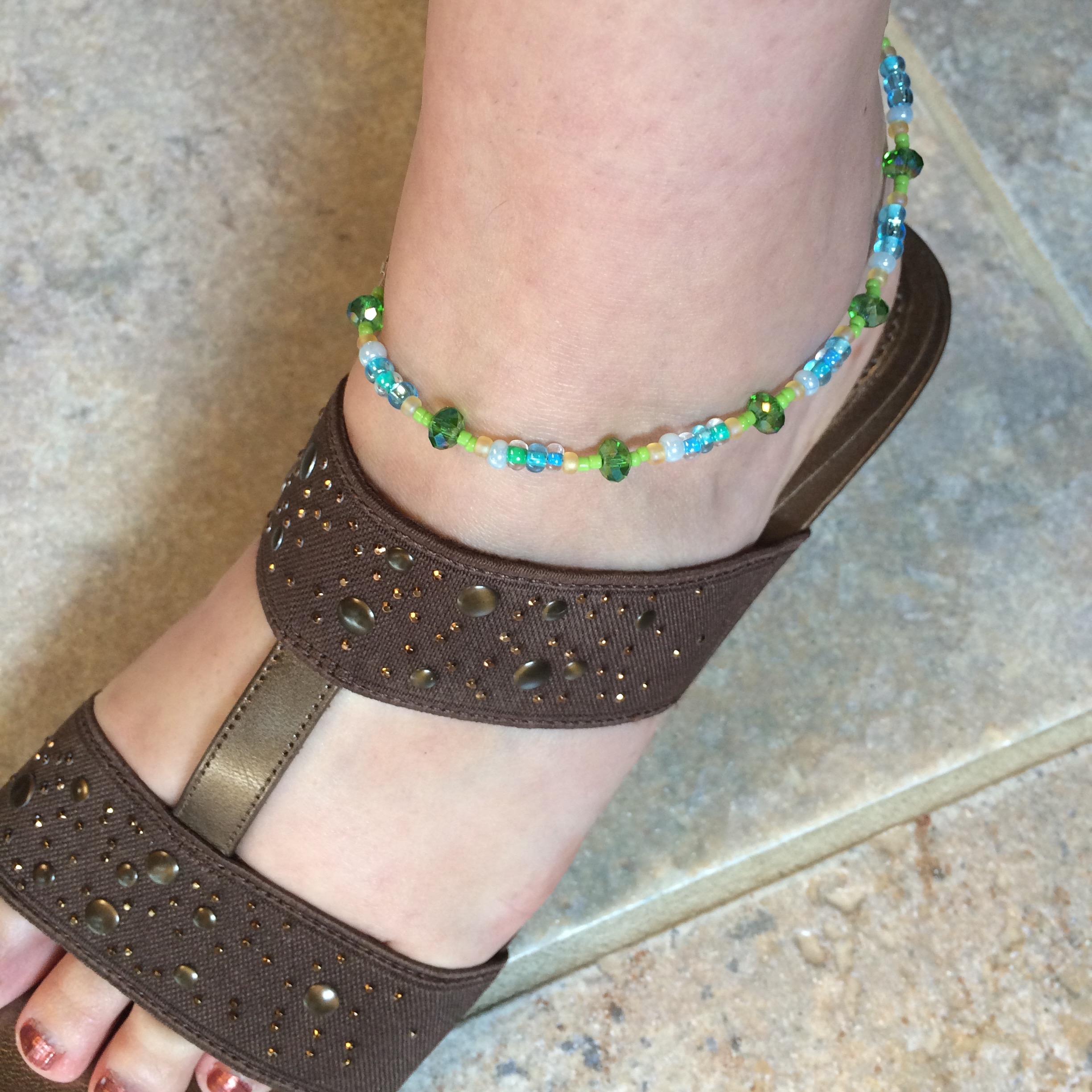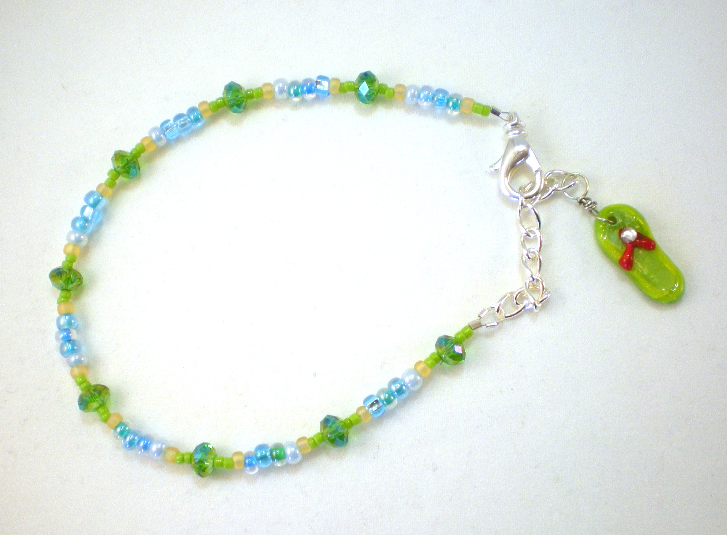Adjustable Aqua and Lime Green Anklet with Flip Flop Charm