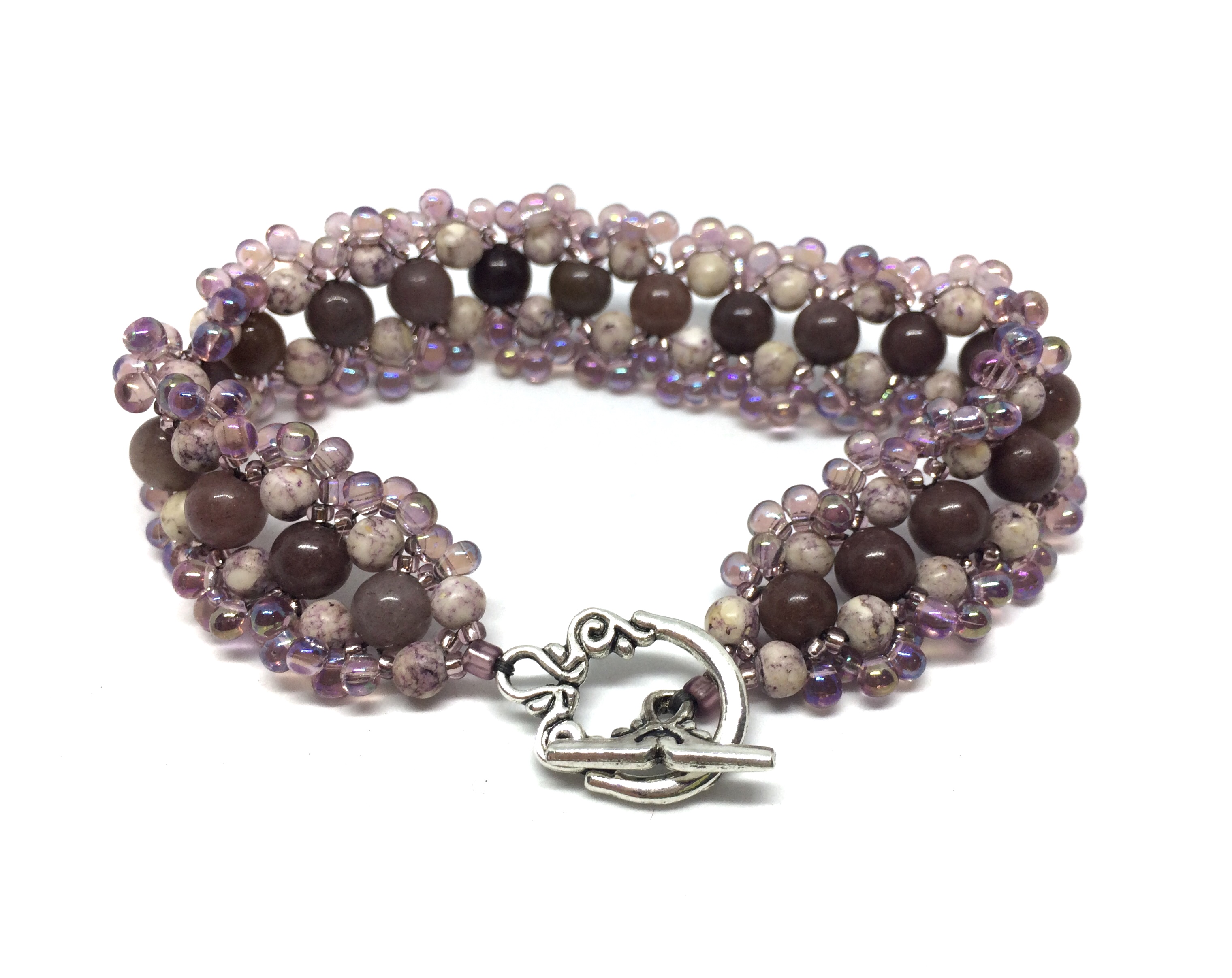 Purple Aventurine and Lilac Stone Hand Woven Bracelet with Toggle Clasp